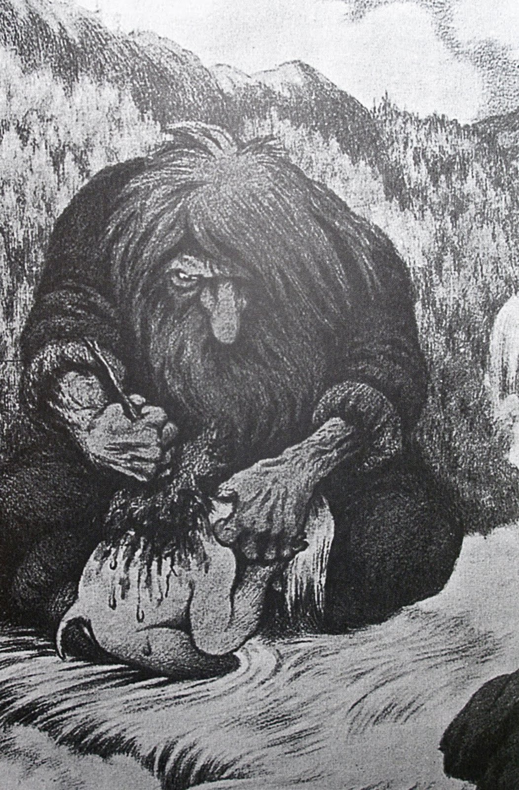 Trolls are mythical beings that are said to live in caves and mountains. They are often portrayed as slow-witted, clumsy creatures with enormous noses and hairy arms. They are said to have tremendous strength and anaversion to sunlight, which is why they often come out at night or during cloudy days.